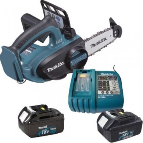 Акумуляторна ланцюгова пилка Makita BUC122RFE - це акумуляторна ланцюгова пилка, призначена для розпилювання деревини. Гумові вставки на ручках гасять вібрацію і дозволяють збільшити контроль над пилкою. Пила оснащена блокуванням від випадкового запуску. При вибігу ланцюга спрацьовує аварійне гальмо (швидкість спрацьовування всього півсекунди). Система регулювання натягу ланцюга пили Makita BUC122RFE відрізняється простотою і дозволяє замінювати ланцюг без допомоги спеціальних інструментів. Автоматичне мастило ланцюга. Заміна та натяг ланцюга без допоміжних інструментів. Стопор на кінцях леза допомагає уникнути небезпечної віддачі. захист рук та запобіжний вимикач із функцією блокування запуску інструменту забезпечують захист працівника. У комплект поставки, крім пили Makita BUC122RFE, входить також валіза для транспортування, олія для змащення (100 мл), 2 акумулятори BL1830, зарядний пристрій DC18RA, шина, ланцюг та круглий напилок.