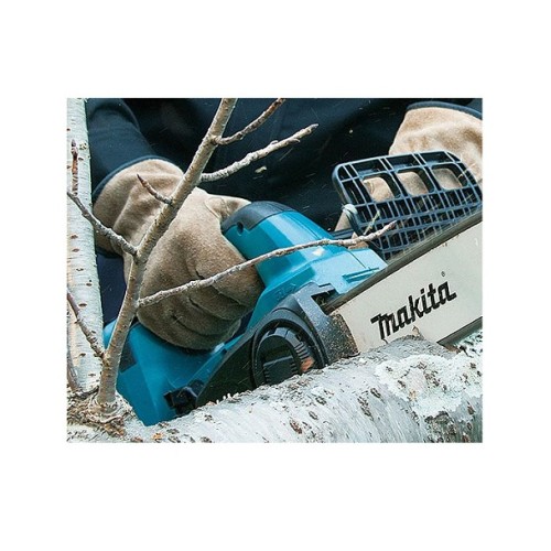 Акумуляторна ланцюгова пилка Makita DUC302Z - це акумуляторна ланцюгова пилка, призначена для розпилювання деревини. Гумові вставки на ручках гасять вібрацію і дозволяють збільшити контроль над пилкою. Пила оснащена блокуванням від випадкового запуску. При вибігу ланцюга спрацьовує аварійне гальмо (швидкість спрацьовування всього півсекунди).