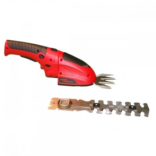 Акумуляторні ножиці IKRA Mogatec GBS 3.6 V зі змінним ножем-кущорізом у комплекті - універсальний садовий інструмент, за допомогою якого можна проводити підрізування, фігурну стрижку чагарників, фінішну обробку газону. Для цього необхідно лише поміняти ріжуче лезо. Ніж для трави шириною 75 мм і ніж-кущоріз шириною 120 мм відрізняються високою якістю виконання, яке гарантують алмазне заточення та лазерний розкрій листів із високолегованих сталей. Особливістю цих ножиць є система Quick-Click IN, завдяки якій заміна ножів здійснюється швидко та без використання додаткових інструментів. Рукоятка з м'якою накладкою підвищує комфорт при роботі.