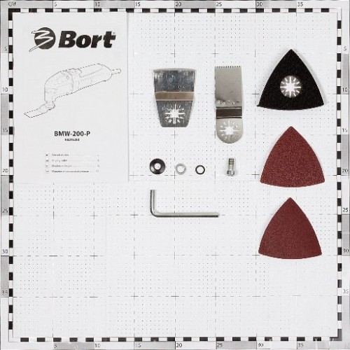 Багатофункціональний інструмент Bort BMW-200-P - універсальна машина для ремонтних та оздоблювальних робіт. Ви отримуєте одночасно і шліфувальну машину, і різак, і стамеску. У надкомпактному корпусі укладена висока потужність. Обхват корпусу складає всього 185 мм, у той час як у більшості конкурентів він - більше 200 мм. плитку, очистити поверхню від старої фарби, клею розчину, шліфувати в важкодоступних місцях. Оснащення, що йде в комплекті, дозволяє виконати всі ці роботи. Крім того, багатофункціональний інструмент Bort BMW-200-P зручний тим, що на нього встановлюється та використовується практично всі аксесуари для подібних мультитулів.