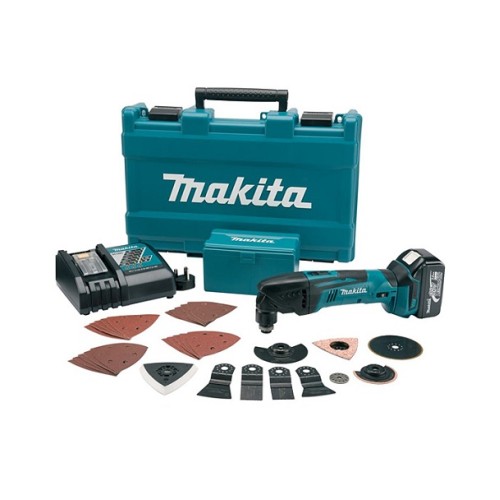 У комплект поставки, крім мультитулу Makita BTM50RFEX4, входить також шестигранний ключ 5, пилозбірник, шліфувальний диск, по 10 шт. шліфувального паперу K60, K100, K150, полотно 85 мм, адаптер, полотно по дереву та металу 28 мм, 2 акумулятори BL1830, зарядний пристрій DC18RC, чемодан для транспортування, скринька для інструментів.