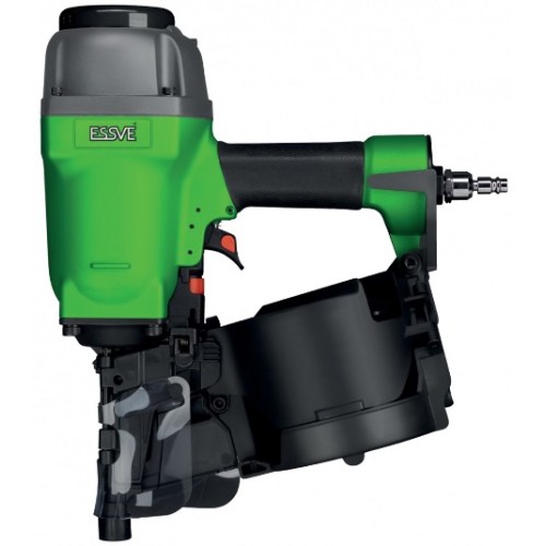 Крепежный инструмент в настоящее время являются наиболее популярным воздушным гвоздезабивным пистолет. Нейлер барабанный 90 мм используются во всех отраслях строительства, производства поддонов или деревянной упаковки. Гвоздезабивной пистолет барабанного типа характеризуются высочайшей эффективностью и долговечностью. Одним из преимуществ пневматических гвоздезабивных пистолетов для поддонов является их высокая прочность и более низкая цена по сравнению с газовыми аналогами. С другой стороны, необходимость подключения к источнику сжатого воздуха немного отнимает эти инструменты мобильности. По этой причине гвоздезабивной пистолет для поддонов Essve CN 15/90 в основном используется на производственных установках для стационарного производства. В зависимости от типа магазина и способа соединения гвоздей, гвозди делятся на: барабанные (гвозди, соединенные проволокой под углом 15º) и реечные гвозди (ленточного типа), изготовленные по двум основным стандартам - гвозди, соединенные бумагой под углом 34° , и гвозди, соединенные пластиком под углом 21º. Нейлер для гвоздей 90 мм в основном используется при производстве поддонов, деревянной упаковки или садовых принадлежностей. Характеризуется высокой скоростью работы и очень большим бобынным гвоздевым магазином. Нейлер реечный в основном используются для строительства каркасных домов в сборной системе. Здесь самые большие конструкционные гвозди используются для гвоздей длиной 130 - 160 мм