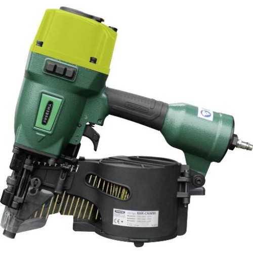Цей міцний барабанний пневматичний цвяховий пістолет вбиває цвяхи Prebena «CNW» завдовжки 45 - 90 мм. Завдяки високій місткості магазину до 300 цвяхів великі проекти, такі як навіси для автомобілів, тераси або садові будиночки, можуть бути ефективно виконані без необхідності повторного завантаження. Через свою компактну конструкцію котушка пневматичного гвоздезабивного пістолета Prebena 8XR-CNW90 також часто використовується в важкодоступних кутових зонах і тому ідеально підходить для роботи в дерев'яному каркасному будівництві, виробництві коробок, ящиків, під конструкцій і опалубки, палетної промисловості.