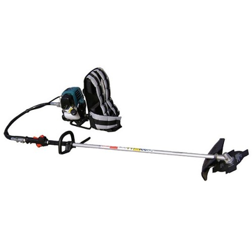 Наплічна бензокоса для професійного використання. Система легкого запуску Primer. Гнучкий вал між двигуном та рукояткою полегшує косіння на крутих схилах та у вузьких місцях. Електронна транзисторна система запалювання.