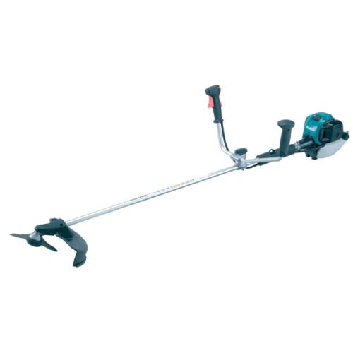 Система быстрого запуска: пружинный механизм пуска обеспечивает быстрый и легкий запуск инструмента. Эргономичная асимметрическая рукоятка изготовлена так, чтобы вертикальная линия центра рукоятки была параллельна пользователю, что позволяет ему работать в удобной позе, не чувствуя усталости. Кроме того, рукоятка обеспечивает более высокую маневренность инструмента. Система смазки двигателя позволяет наклонять инструмент под любым углом во время непрерывной работы. Универсальный защитный кожух для железной и нейлоновой режущей головки. 4-тактный двигатель компании Makita (MM4) эффективен по сравнению с другими, его эксплуатационные расходы на 60% ниже. Система запуска EasyStart. Двигатель работает в любом положении - 360°.