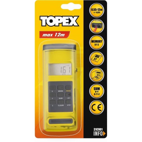 Ультразвуковой дальномер 0.55-12 м, (LxW) 148 x 58 мм, точность измерений ±0,5%