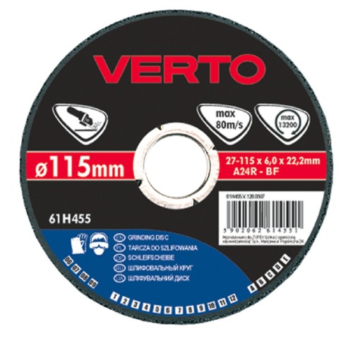 Диск шліфувальний Verto 115 x 6.0 x 22.2 мм 61H455