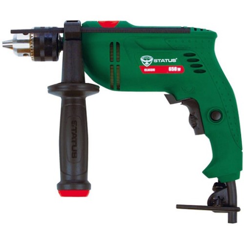Дриль ударний Status DP 650 чудовий варіант для роботи в побуті. Свердління з ударом – її головна особливість. Має два режими роботи, що дозволить свердлити деревину або метал, а також проробляти отвір у міцніших матеріалах, наприклад, бетоні. Незважаючи на те, що найчастіше Status DP 650 відносять до інструментів побутового класу, вона має непогані характеристики. Має регулювання оборотів, що здійснюється ступінчастим та плавним способами. Перший – за допомогою регулювального коліщатка, а інший регулює силою натискання на клавішу пуску. Дриль має ключовий патрон, який може фіксувати свердла з хвостовиками до 10 мм.