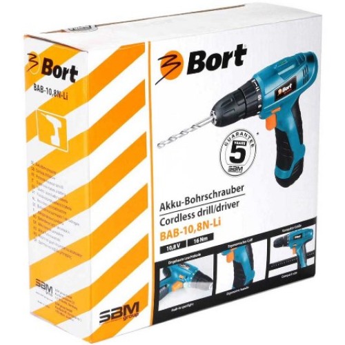Шуруповерт Bort BAB-10.8N-Li - недорогий та легкий інструмент для дому. Li-Ion технології гарантують довгу справну роботу акумулятора, і що він не розрядиться під час зберігання. Енергоємність акумулятора дозволяє працювати тривалий час, а потужності інструменту вистачає для всіх робіт вдома або на дачі. Для зручності роботи рукоятка прогумована. Передбачено підсвічування робочої зони, що допомагає працювати у слабоосвітлених місцях. Малі розміри та вага дають можливість комфортно використовувати шуруповерт довгий час. Як і у всіх сучасних шуруповертів, є функція реверсу та швидкозатискний патрон, що полегшує заміну насадок. У комплекті знаходиться зарядний пристрій, набір із 6 біт-насадок та зручний магнітний тримач для них, щоб зберігати приладдя в порядку. Все це робить Bort BAB-10,8N-Li гарним шуруповертом.