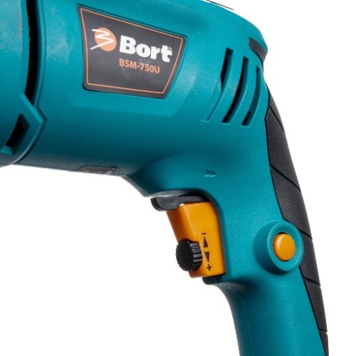 Дриль ударний BSM-750U -модель середньої потужності, для тих хто часто ремонтує та будує. Потужності дриля в 710 Вт цілком вистачить для більшості робіт по дому та дриль не перегріватиметься і працюватиме на граничних режимах. Реверс та регулювання швидкості обертання, режим свердління з ударом та рукоятка з порожниною для зберігання свердл, м'яка накладка на основну рукоятку та глибиномір - всі ці переваги роблять дриль Bort BSM-750U незамінним у наборі електроінструментів домашнього майстра.