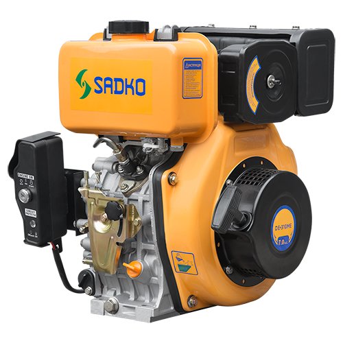 Дизельний двигун Sadko DE-310ME на 7,0 л. Потужності 4-х тактного двигуна достатньо, щоб працювати з польовою та садовою технікою, навісним обладнанням, а також використовувати двигун як стаціонарне обладнання для верстатів або циркулярної пилки.