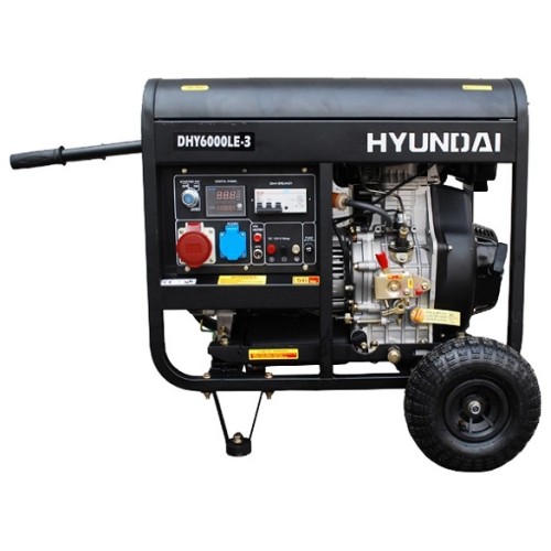 Дизельний генератор Hyundai DHY 6000LE-3 служить для забезпечення електроживленням приладів у місцях із відсутністю стаціонарної електромережі. Кришка паливного бака знаходиться у зручному місці, що дає можливість швидко дозаправитися або перевірити рівень палива. Мінімальна витрата палива дозволяє безперервно функціонувати до 16 годин без дозаправки. Наявність двох коліс великого діаметра гарантує швидке та зручне переміщення генератора по робочому майданчику.