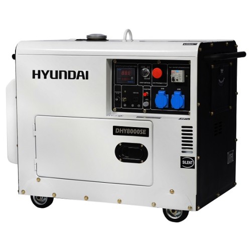 Дизельний генератор Hyundai DHY8000SE служить для постачання електрики різних споживачів, у тому числі й споживачів з високими пусковими струмами. Ця модель широко використовується на будівельних майданчиках. На генераторі встановлені дві розетки на 220 В. Розетки електростанції мають кришки із самоповоротним механізмом, які запобігають попаданню бруду та пилу, уберігаючи тим самим мережне з'єднання. Шумопоглинаючий корпус робить роботу поряд з генератором приємнішою.