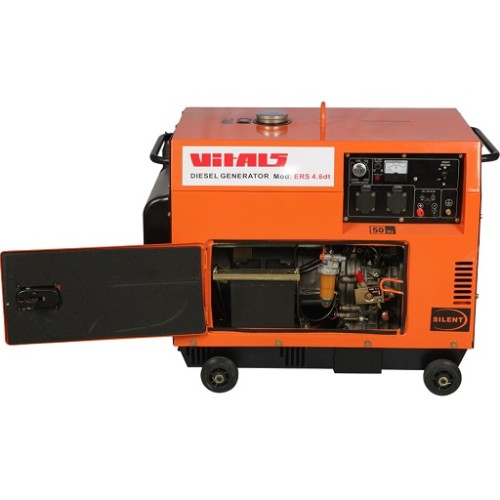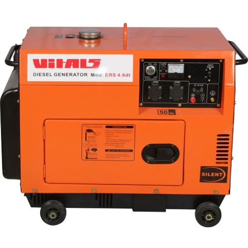 Дизельна мініелектростанція Vitals ERS 4.6dt призначена для аварійного або резервного електроживлення побутових споживачів змінного струму однофазного змінного струму напругою 220 В і частотою 50 Гц. Сфера застосування цього побутового пристрою досить широка. Використовуючи цю модель, максимальна потужність якої становить 5,0 кВА, можна забезпечити електроенергією будинок з прилеглою до нього територією, дачу, гараж або складське приміщення. Головною відмінною перевагою дизельної мініелектростанції від бензинового аналога є низька витрата палива, завдяки чому знижується собівартість електричної енергії, що виробляється.