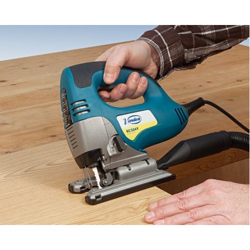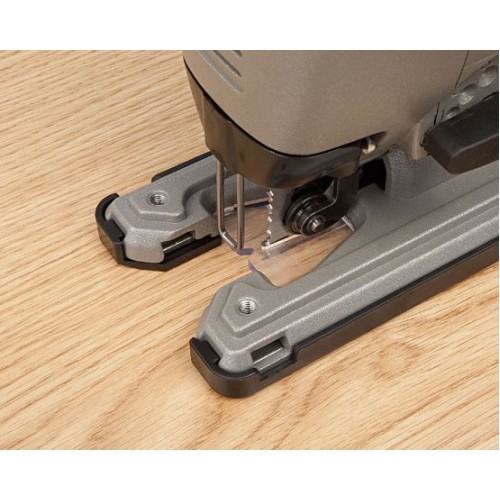 Оснащений механізмом, що забезпечує швидку зміну ріжучого інструменту і похилою основою, що регулюється в діапазоні від 0° до 45°, а також захистом від вильоту тирси, що забезпечує безпеку працівника, та висновком для приєднання зовнішнього пилозбірника. Зручний для роботи однією рукою та виконання криволінійних пропилів.