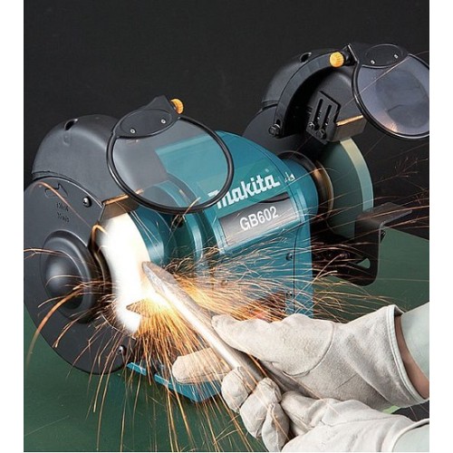 У комплект поставки, крім верстата Makita GB602 входять також шліфувальне коло WA60, шліфувальне коло GC120, захисні окуляри.