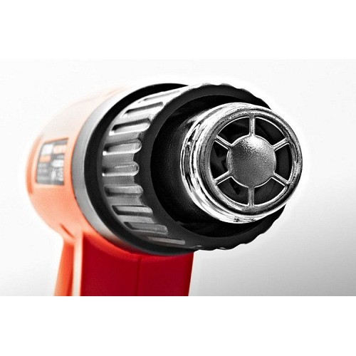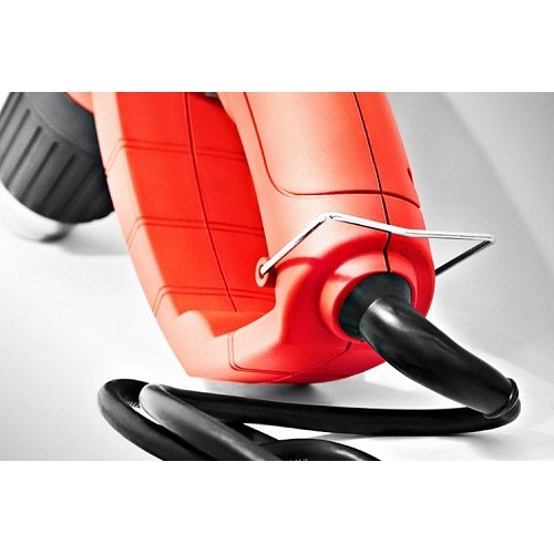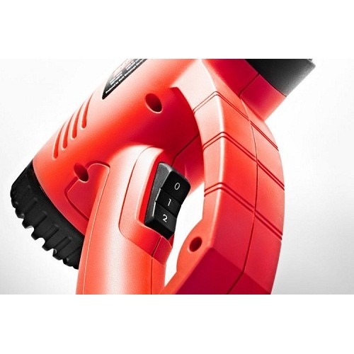 Потужність нагрівального елемента становить 2000 Вт, що дозволить швидко підняти температуру повітря до необхідної для різних матеріалів. Двопозиційний перемикач дозволяє відразу вибрати максимально можливе значення розжарення. Ергономічна D-подібна рукоятка не дасть виробу вислизнути і зменшить втому при тривалому функціонуванні. Подвійна ізоляція вбереже оператора від отримання травм та каліцтв. Плоска грань надає можливість стаціонарної установки.