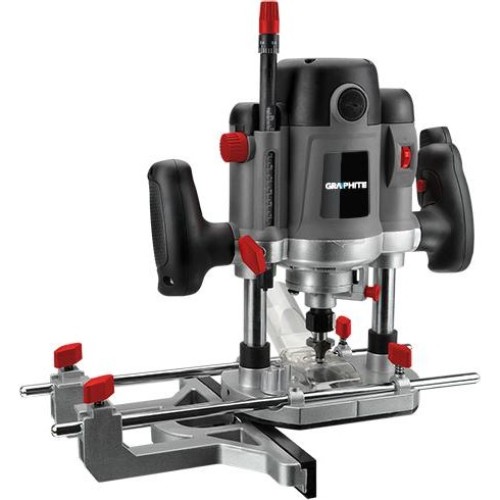 Фрезерний верстат Graphite 59G716, 1500W, призначений для різання плоских та фасонних поверхонь. Інструмент має функцію поступового пуску та функцію швидкості безступінчастої глибини різання. Швидкість шпинделя в діапазоні від 6000 до 26000 обертів за хвилину. Фрезерування фіксації глибини різання шпинделя та замок. Пристрій оснащений алюмінієвим корпусом кріплення шпинделя та стабільною алюмінієвою ногою з підтримкою фрезерування на плоскій поверхні. Ергономічні ручки фрезерні верстати були покриті протиковзним матеріалом, тому керуючий пристрій є безпечним і зручним. Ця робота також сприятиме дренаж вийнятого ґрунту, забезпечення порядку на робочому місці. У комплекті з маршрутизатором кінчик вийнятого вилучення матеріалу, паралельної напрямної, напрямних стрижнів, фрези, цанги, напрямні профілі, елемент для різання кола, ключ складання, валиком, смуги з градуюванням та запасні вугільні щітки. Все це у твердому корпусі для зберігання та транспортування.