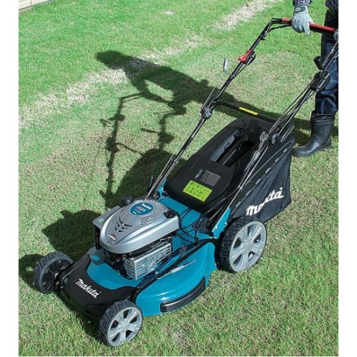 Газонокосарка бензинова Makita PLM5600 призначена для газонів площею до 2200 м ². Ця самохідна газонокосарка має 3 швидкості просування: 3.6, 4.0, 4.5 км/год. Корпус газонокосарки пофарбований стійкою до ультрафіолету фарбою, що дозволяє зберігати початковий колір інструменту довгий час. Функція стрижки трави на рівні коліс з одного боку дозволяє стригти траву впритул до паркану та інших перешкод не залишаючи навіть тонкої смужки нескошеної трави.