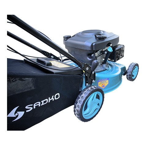 Бензиновий двигун, потужністю 4 л.с дозволяє застосовувати газонокосарку для тривалих робіт на великих територіях. Система повітряного охолодження забезпечує своєчасне обдування двигуна та його елементів, що гріються. Повітряний фільтр забезпечує якісне очищення повітря від пилу та бруду. Запустити машину в роботу можна за допомогою ручного стартера, весь процес старту займає лічені хвилини і не потребує серйозних фізичних зусиль.