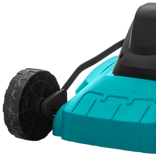 Зручні колеса з рельєфним покриттям не ковзають по траві, відмінно тримають тверду поверхню.