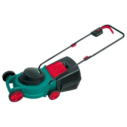 Газонокосарка електрична Verto 52G571 на колесах із шириною скошування 330 мм. Оснащена кошиком для збору трави на 26 л та регулятором коліс. Висота зрізу трави: 50/70/90 мм. Призначена для побутового використання, а саме для скошування трави на присадибній ділянці.