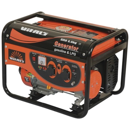 Мініелектростанція Vitals ERS 2.0bg з комбінованим живленням двигуна призначена для аварійного або резервного електроживлення побутових споживачів змінного струму однофазного змінного струму напругою 220 В частотою 50 Гц. Дана модель, максимальна потужність якої становить 2,2 кВт, здатна забезпечити електроенергією будинок, дачу, гараж чи складське приміщення.