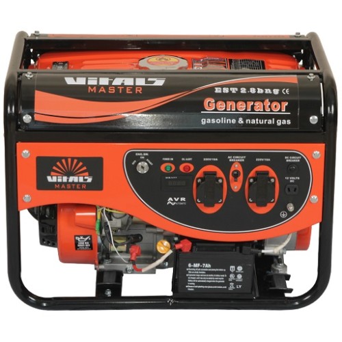 Мініелектростанція Vitals Master EST 2.8bng з комбінованим живленням двигуна призначена для аварійного або резервного електроживлення побутових споживачів однофазного змінного струму напругою 220 В частотою 50 Гц. Дана модель, максимальна потужність якої становить 3,0 кВт, здатна забезпечити електроенергією будинок з прилеглою до нього територією, дачу, гараж або складське приміщення.