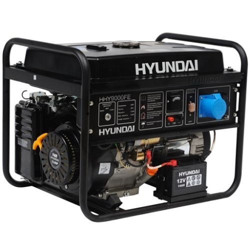 Бензиновий генератор Hyundai HHY9000FE ATS служить для постачання електрики різних споживачів, у тому числі й споживачів з високими пусковими струмами. Ця модель відмінно підійде для резервної подачі електрики, при його відключенні, для цього є вбудований блок ATS. На генераторі встановлено дві розетки: перша на 16 ампер, друга на 32 ампера. Розетки електростанції мають кришки із самоповоротним механізмом, які запобігають попаданню бруду та пилу. Відмінною рисою даної моделі є високоякісний, чотиритактний потужний двигун HYUNDAI IC425 об'ємом 420 куб. див.