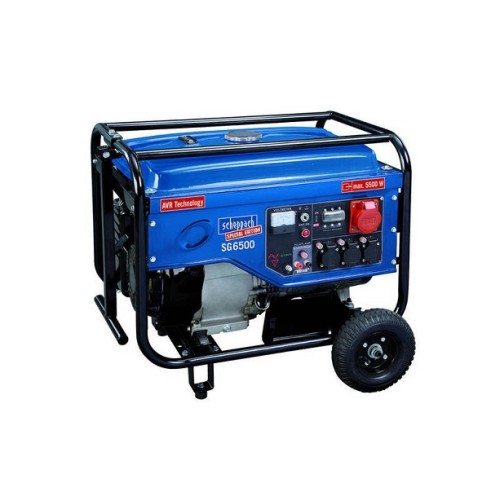 Потужний та надійний бензиновий генератор SG6500 від німецької компанії Scheppach – новинка на українському ринку серед генераторів для побутових потреб. Вигідно відрізняється від інших представників побутового класу поєднанням компактності та високої продуктивності. Відмінна риса - наявність вихідного струму не тільки для 220В, а й для 400В. Мобільність та автономність пристрою дозволяють використовувати його у разі відсутності або незапланованого відключення електрики. Горезвісна німецька якість складання, хороша потужність, надійність конструкції, безшумність, а також здатність до тривалої роботи без дозаправки роблять модель SG 6500 ідеальним резервним джерелом електроенергії в будь-яких експлуатаційних умовах. Пристрій виробляє якісний та стабільний струм, продукуючи потужність 5 кВт., Якої вистачає для забезпечення електрикою приватного будинку, дачі, невеликого магазину або будівництва в місці, де немає електромережі. Якісний струм допускає електропостачання холодильників, приладів освітлення насосної станції або нагрівальних котлів.