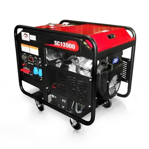 Трифазний генератор Vulkan SC13000 це нова модель лінійки, що відрізняється стильним дизайном. На лицьовій стороні передбачена проста і зрозуміла панель управління з розетками змінного та постійного струму, вольтметром та додатковими клемами постійного струму для заряджання акумуляторів. Міцна рама передбачає наявність антивібраційних демпферів під двигуном для зменшення рівня коливань, що поряд з іскрогасником до глушника забезпечує також малошумність для більшого комфорту в роботі. Зручності експлуатації посприяє електростартер для легкого швидкого запуску.