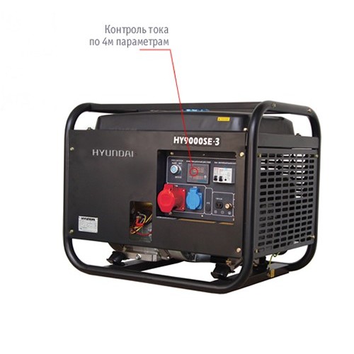 Генератор Hyundai HY 9000SE-3 укомплектований надійним шумозахисним кожухом, який не тільки поглинає шум, а й захищає робочі елементи апарату від механічних пошкоджень. Дана модель електростанції застосовується як резервне джерело живлення для тимчасового забезпечення електроенергією невеликих дачних будинків, а також для живлення однофазних та трифазних електроприладів на будмайданчиках. У бензогенераторі передбачені: електростартер для швидкого та легкого пуску двигуна та стабілізатор для попередження стрибків напруги.