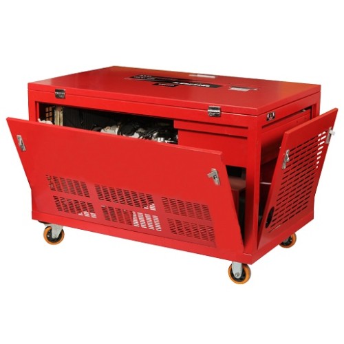 Бензиновий генератор Vitals Master EST 15.0bt виконаний у шумоізоляційному кожусі. Всупереч зниженню рівня шуму корпус виконує захисну функцію, захищаючи внутрішні елементи від механічних пошкоджень, від попадання вологи тощо. Незважаючи на закрите виконання, виробник потурбувався про простий доступ до робочих вузлів для обслуговування апарату. Наявність електростартеру значно спростила початок роботи. А завдяки колесам транспортування по рівній поверхні важкий агрегат легко переміщає навіть одна людина. Простота експлуатації досягається за рахунок практичного електронного табло, на яке виводяться показники напруги, кількості мотогодин, частота коленвала, температура двигуна.