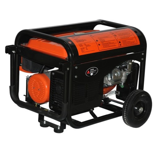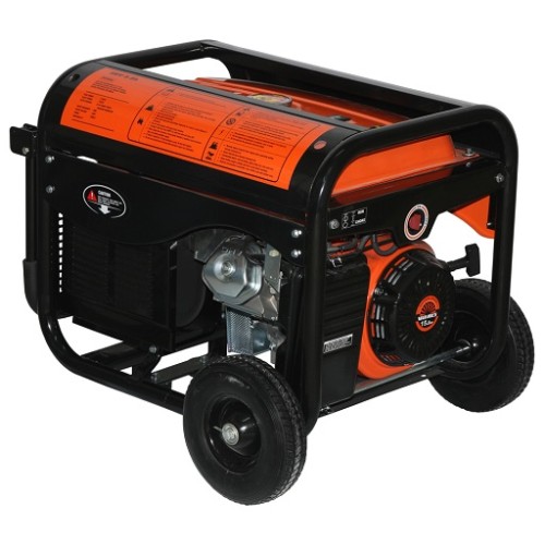 Двигун та генератор змінного струму встановлені на міцній металевій рамі (з додатковим захистом паливного бака) через демпферні опори, які суттєво знижують вібрацію агрегату та запобігають його переміщенню в процесі експлуатації. Рівень шуму при роботі на максимальній потужності становить 72 дБ. Запуск двигуна здійснюється або ручним стартером або електричним.