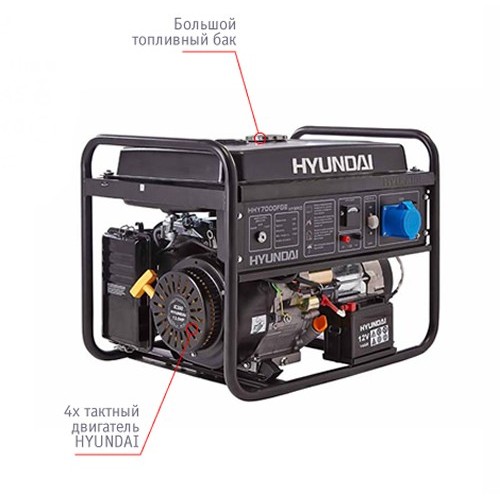 Главной особенностью HHY 7000FGE является возможность применять в качестве топлива как бензин, так и сжиженный газ. При использовании газового топлива не образуется экологически вредных выбросов.
