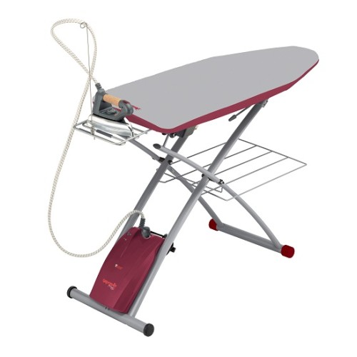 Кожна деталь системи прасування служить роботі з комфортом: полиця для зберігання білизни, кріплення для ручного намотування шнура, 8 рівнів висоти дошки (від 66 до 94 см), знімний чохол, який можна прати або просто замінити, вбудовані колеса для легкого транспортування дошки.