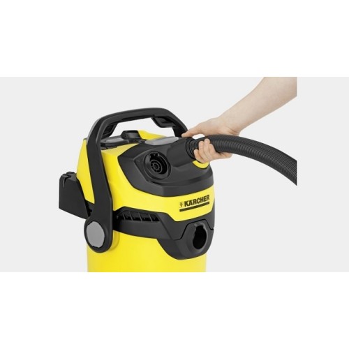 Пилосос WD 5 – модель середнього класу вдосконаленого покоління господарських пилососів Kärcher – ідеальний варіант для збирання великих площ. Висока сила всмоктування при споживанні 1100 Вт. Має контейнер ємністю 25 л, що дозволяє збирати великий об'єм рідини чи сміття. Зручна конструкція системи фільтрації дозволяє зняти та відтрусити фільтр без найменшого торкання до нього руками: касетник з фільтром розташований зовні та легко знімається однією рукою (не потрібно відкривати кришку пилососу та діставати фільтр зсередини після роботи). Апарат оснащений двома подовжувальними трубками, насадкою для підлоги і сухого прибирання, плоским складчастим фільтром і фільтр-мішком з нетканого матеріалу. Має функцію видування, місце для зберігання кабелю, місце для зберігання аксесуарів, зручну ручку з антистатичного матеріалу і функцію автоматичного прочищення фільтра.