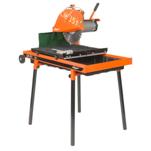 Новый CM351 – это легкий камнерезный станок с широкой конвейерной тележкой и поворачивающейся на 45° поворотной головкой для точной резки под углом.