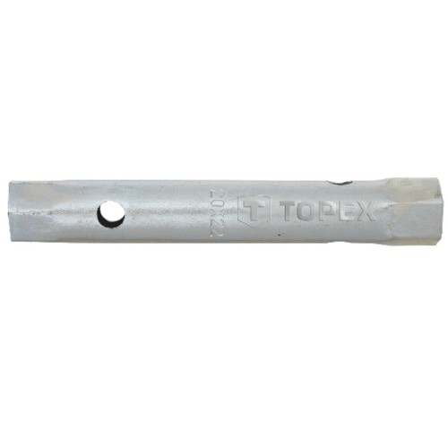 Ключ торцевий трубчастий Topex із шестигранними головками. Його можна рухати коміром, вставленим в отвори, розташовані в корпусі ключа. Шестигранний переріз кінців дозволяє повертати торцевий ключ за допомогою плоского ключа гайкового.