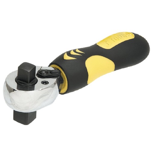 Ключ тріскачковий Topex, коротка подвійна 1/2" x 3/8", 135 мм. корпус виготовлений із хромванадієвої сталі. Храповий механізм 72 зуби, перемикач напряму обертання, двокомпонентна рукоятка.