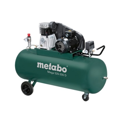 Компресор Metabo Mega 520-200 D (601541000) - надійний двопоршневий масляний компресор з клинопасовим приводом і ресивером великого об'єму. Машина відноситься до класу професійних компресорів і може використовуватися як основний агрегат у пневматичних лініях.