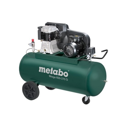 Компресор Metabo Mega 650-270 D (601543000) - високопродуктивна двопоршнева машина з двоступінчастою системою стиснення, надійною клинопасової передачею та ресивер великого об'єму. Це сама продуктивна модель компресора Metabo. Машина підходить для побудови пневматичних продуктивних систем з можливістю одночасного підключення декількох інструментів.