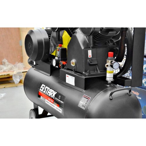 Stark 30100-SAVB Profi – двоциліндровий компресор з ремінним приводом. Масляний компресор з горизонтальним розташуванням ресивера, може використовуватися в промисловості і на будівництві. Ремінна передача значно знижує шум і підвищує загальну надійність агрегату. Має дві пари коліс. Бак на 100 л і 2,2 кВт потужності забезпечують продуктивність 310 л/хв. В агрегат включені: повітряний фільтр, манометри та однофазний двигун.