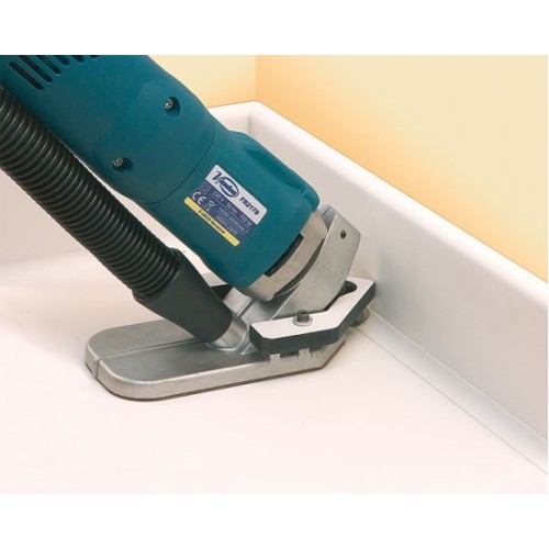 Фрезер спеціально розроблений для обробки внутрішніх радіусів у місцях стиків пристінкового борту та робочої поверхні, виконаних зі штучного каменю (Corian, Rausolid тощо). Фрезер оснащений спеціальним упором, що виключає пошкодження бічної стінки, і, водночас, забезпечує легке керування фрезером. Дозволяє швидко і просто фрезерувати поверхні, що сполучаються і отримати бездоганну обробку. Фрезер оснащений потужним 750 Вт двигуном з електронним регулюванням швидкості та контролю крутного моменту для забезпечення постійної швидкості двигуна під навантаженням. Для отримання переходу необхідного рівня якості фрезерування виконується у два проходи – попередній та чистовий.