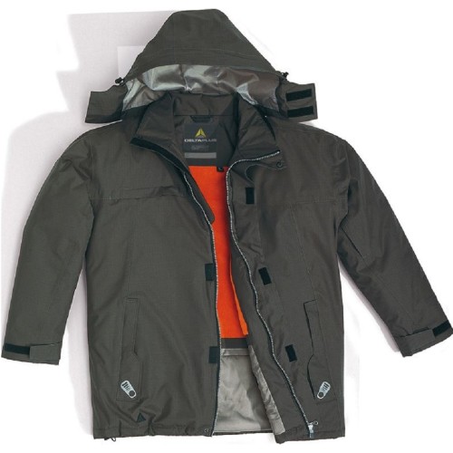 Куртка робоча зимова Delta Plus Duncan DUNCAGR має такі характеристики: водонепроникні шви, замок-блискавка, закрита вітрозахисною планкою на липучці, капюшон, що відстібається. Нижня частина куртки регулюється зручною еластичною вставкою. П'ять великих кишень для всіх аксесуарів або інструменту. Матеріали: тканина верху – поліестер Ripstop з ПВХ-покриттям, верхня підкладка – ватний фліс, нижня підкладка – стьобаний поліестер Тафта.