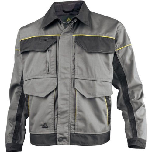 Куртка робоча Delta Plus MCVESGR - сучасний європейський спецодяг. Нижня частина регулюється кнопкою. Загалом шість кишень. Шиється з наступних матеріалів: Твіл 65% Поліестер 35% Бавовна 245 г/м2. Ідеальна у ролі верхнього одягу для співробітників сільського господарства, виробництва, будівництва та інших напрямів діяльності. Приємний нюанс: достатня кількість кишень для будь-якого приладдя.