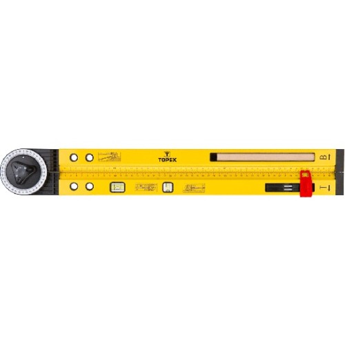 Кутомір розвідний Topex - це інструмент, що поєднує кілька засобів вимірювань. Має кутомір з робочим діапазоном 0 ° - 270 °, рівень довжиною 500 мм з двома ампулами, лінійку довжиною 50 см, можливість закріплення столярного олівця, завдяки чому може використовуватися як циркуль. Кріпильний гвинт полегшує вимір кутів. Бренд Topex призначений для домашніх майстрів. Деталі: Кутомір розвідний з рівнем 500 мм, 2 ампули, олівець, можна використовувати як циркуль.