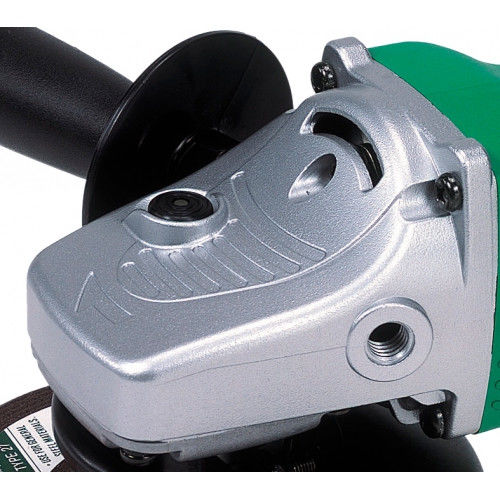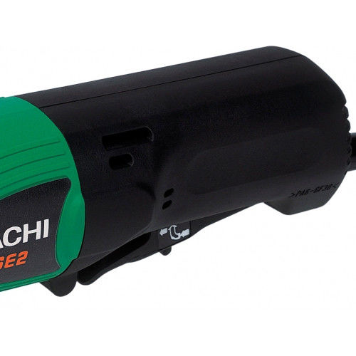 Кутова шліфувальна машина Hitachi G13SE2 виготовлена з поліаміду, що забезпечує достатню міцність пристрою та надає додаткову ізоляцію. Бічні ребра жорсткості відповідають за безпеку при падінні або ударі. Збалансованість інструменту дає можливість оперувати однією рукою, що є незамінним якщо необхідно притримати заготівлю. Відведення тепла здійснюється витісненням завдяки свіжому повітрі, що надходить. Спеціальний вентилятор всмоктує його в районі редуктора, а видування відбувається біля колектора якоря. Виріб відрізняється гарною ергономічністю та зручністю хвату. Важіль на кнопці пуску запобігатиме випадковому включенню, тим самим убезпечивши робітника і тих, хто знаходиться поруч. ПВХ оболонка шнура живлення гнучка, але водночас добре захищає від ураження електричним струмом. Великий ресурс служби болгарки позбавить Вас необхідності постійного сервісного обслуговування.