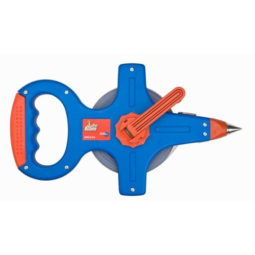 Стрічка вимірювальна сталева, двокомпонентна рукоятка, гачок, довжина 50 м, ширина 10 мм.