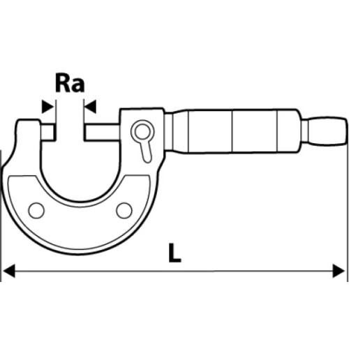 Мікрометр Topex довжиною 135 мм, з робочим діапазоном 0 – 25 мм.